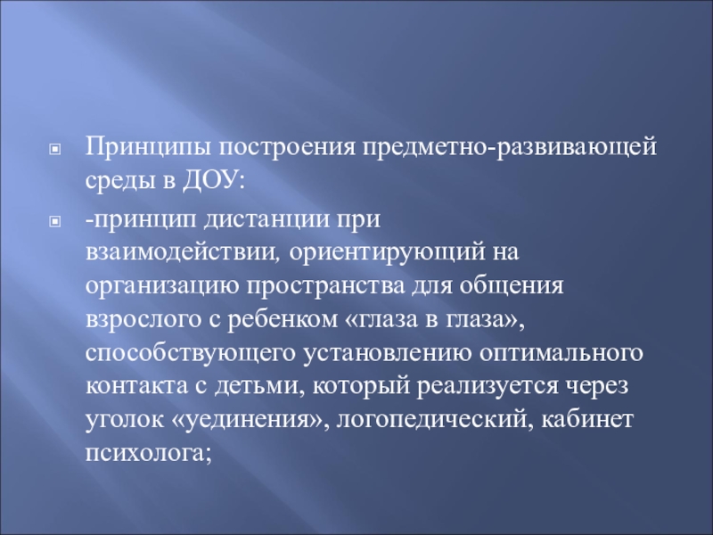 Принципы построения предметно-развивающей среды в ДОУ: