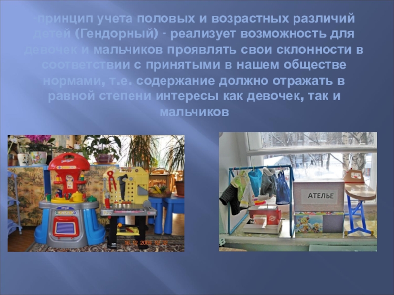 Слайд 28-принцип учета половых и возрастных различий детей (Гендорный) - реализует возможность для