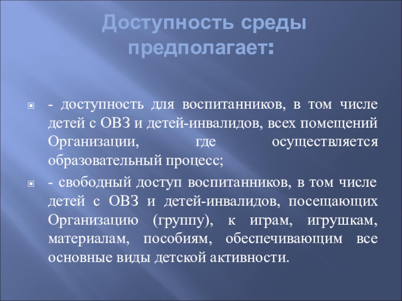 Слайд 9 Доступность среды предполагает: