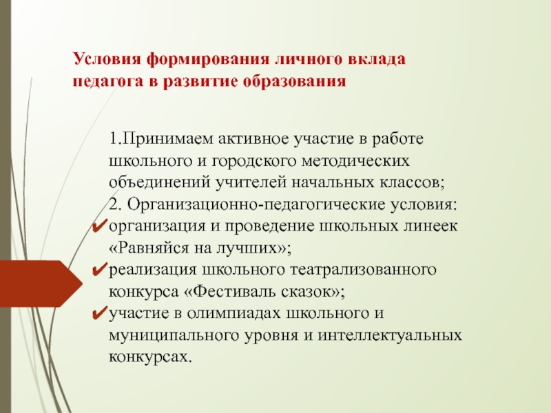Слайд 3Условия формирования личного вклада педагога в развитие образования