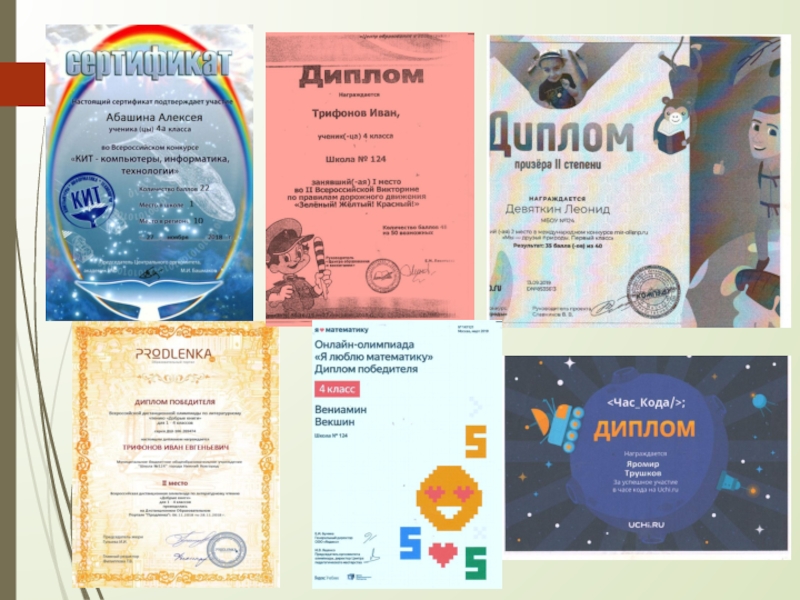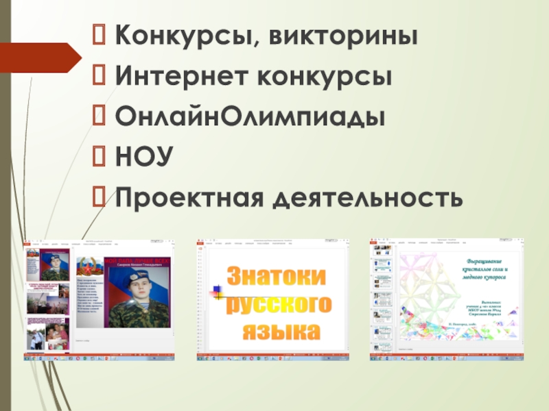 участие в олимпиадах школьного и муниципального уровня и интеллектуальных конкурсах.