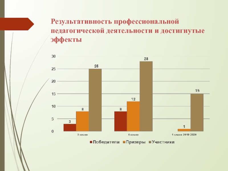Слайд 17Результативность профессиональной педагогической деятельности и достигнутые эффекты
