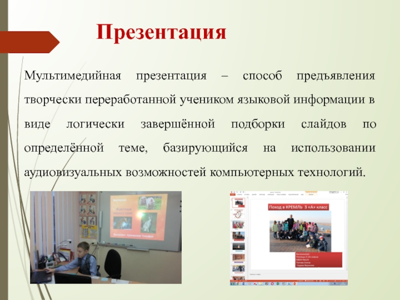 Мультимедийная презентация – способ предъявления творчески переработанной учеником языковой информации в