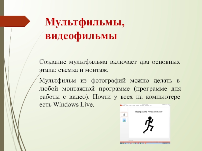 Создание мультфильма включает два основных этапа: съемка и монтаж.