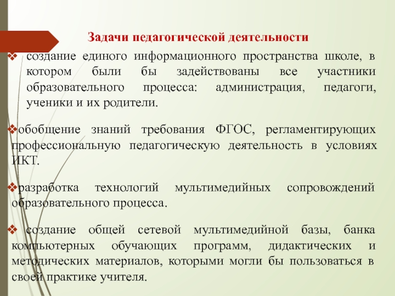 обобщение знаний требования ФГОС, регламентирующих профессиональную педагогическую деятельность в условиях ИКТ.