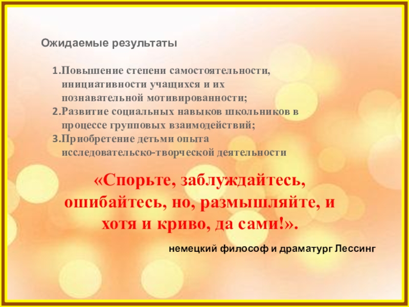 «Спорьте, заблуждайтесь, ошибайтесь, но, размышляйте, и хотя и криво, да сами!».