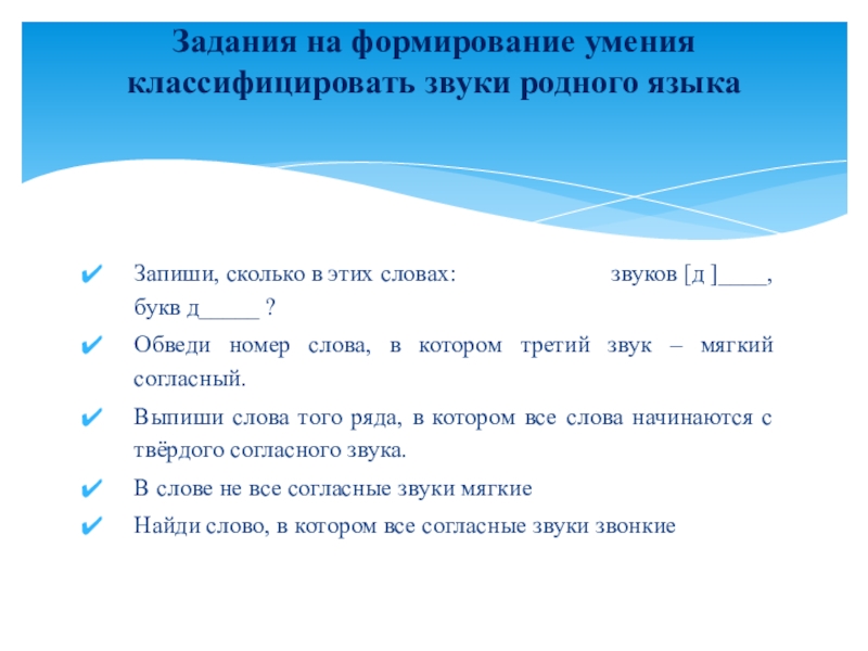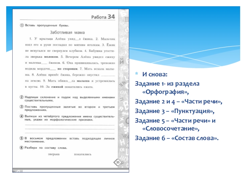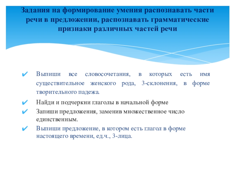Задания на формирование умения распознавать части речи в предложении, распознавать грамматические признаки различных частей речи