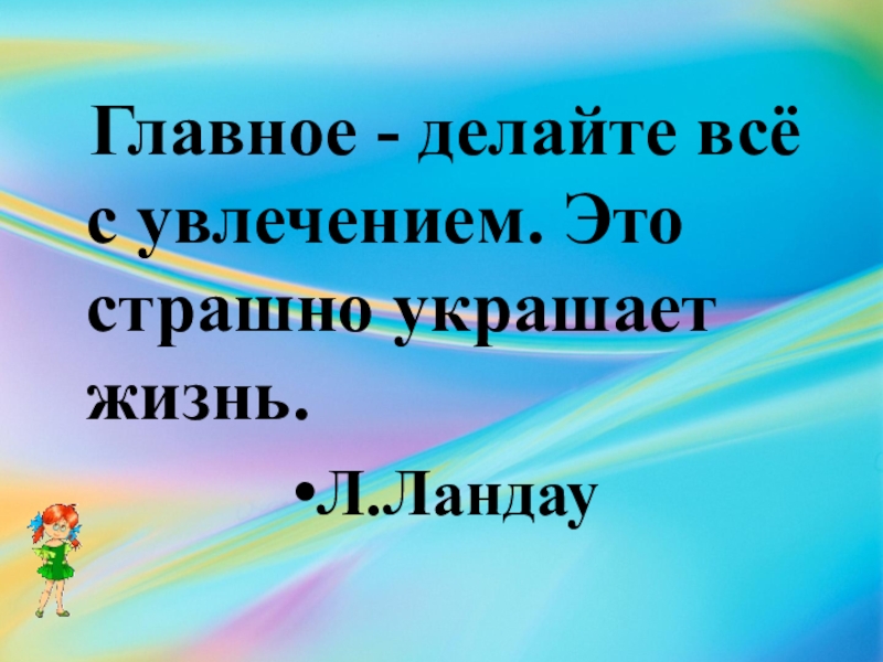 Главное - делайте всё с увлечением. Это страшно украшает жизнь.Л.Ландау