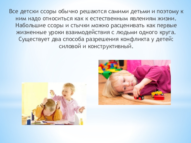 Слайд 6Все детски ссоры обычно решаются самими детьми и поэтому к ним