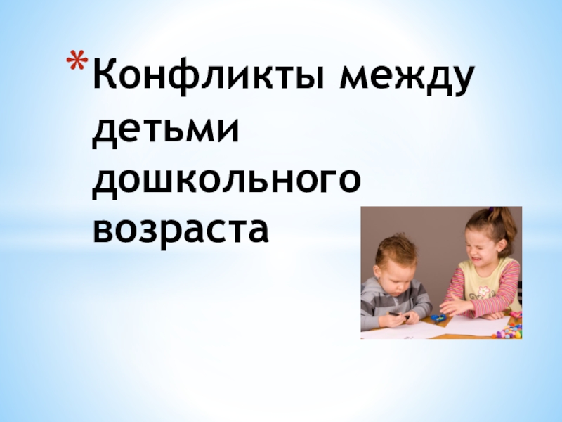 Слайд 1Конфликты между детьми дошкольного возраста