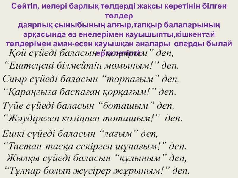 Неге олай дейсіңдер, иемізге мен керекпін. Етімді жеп, сүтімді ішеді,құрт, май алады