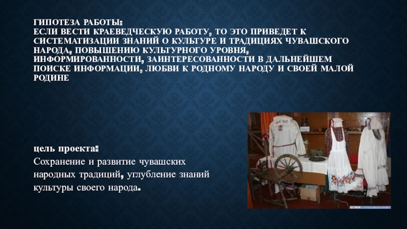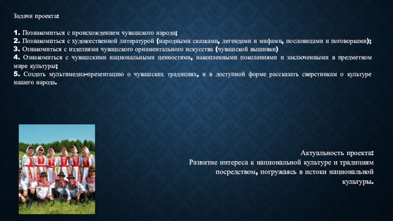 Сохранение и развитие чувашских народных традиций, углубление знаний культуры своего народа.