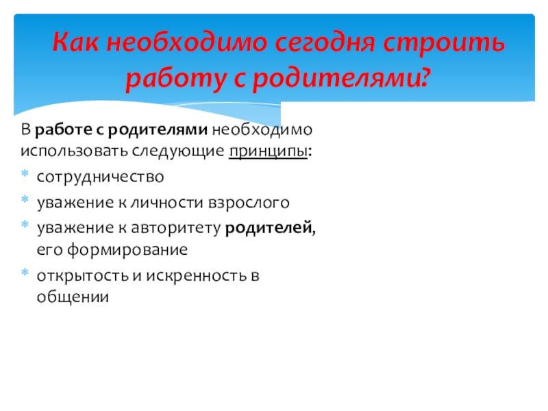 Как необходимо сегодня строить работу с родителями?