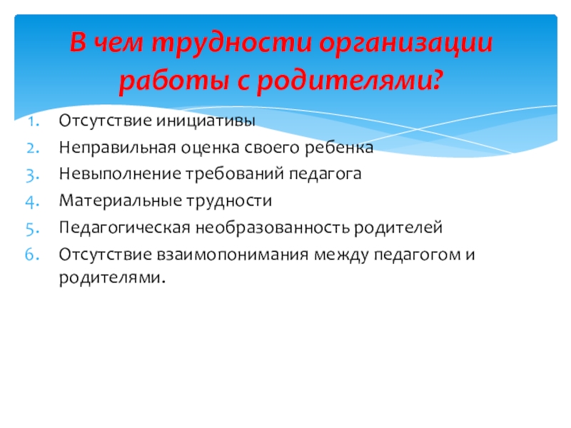 В чем трудности организации работы с родителями?