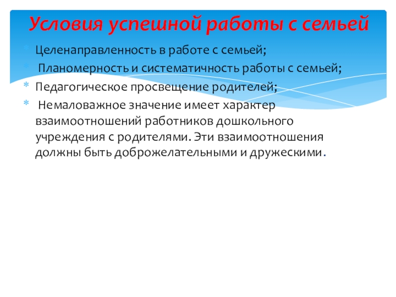 Условия успешной работы с семьей