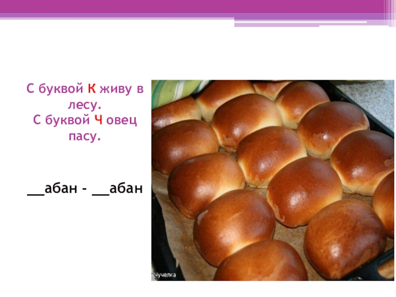 С буквой К живу в лесу. С буквой Ч овец пасу.    __абан - __абан