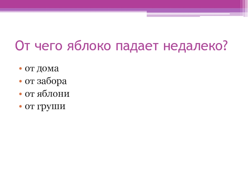 От чего яблоко падает недалеко?от домаот забораот яблониот груши