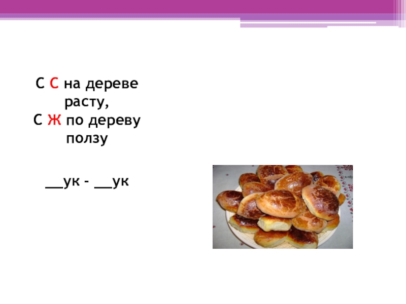 Слайд 11С С на дереве расту, С Ж по дереву ползу __ук - __ук