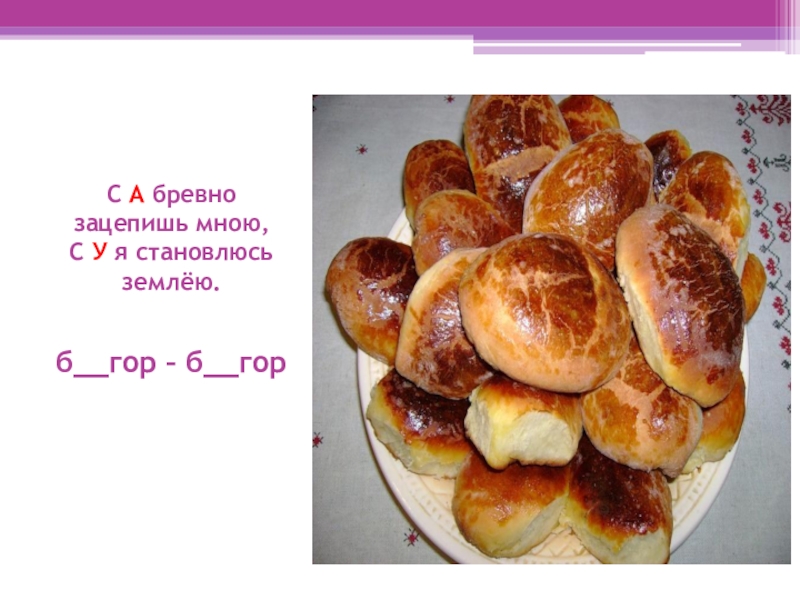 Слайд 15С А бревно зацепишь мною, С У я становлюсь землёю. б__гор – б__гор