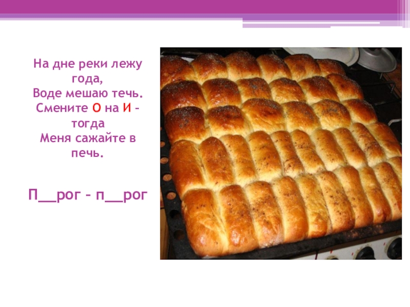 Слайд 13На дне реки лежу года, Воде мешаю течь. Смените О на И –