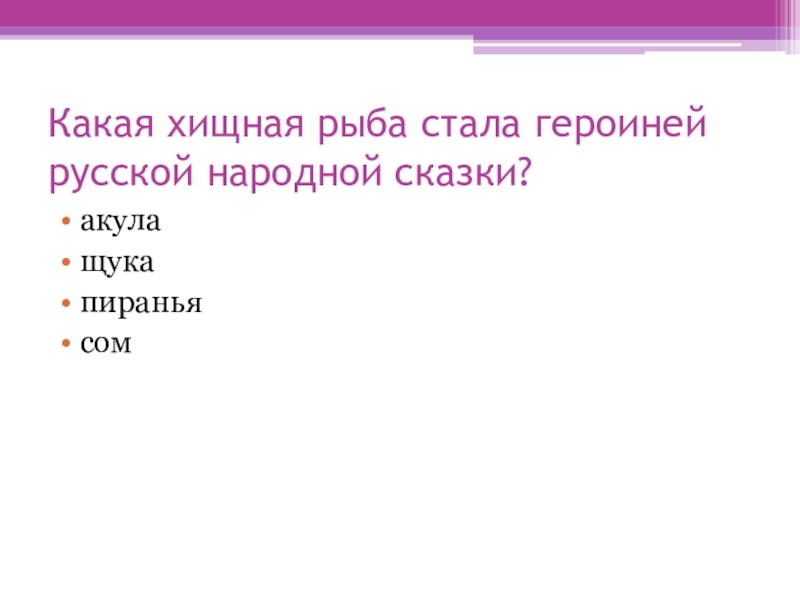 Слайд 24Какая хищная рыба стала героиней русской народной сказки?