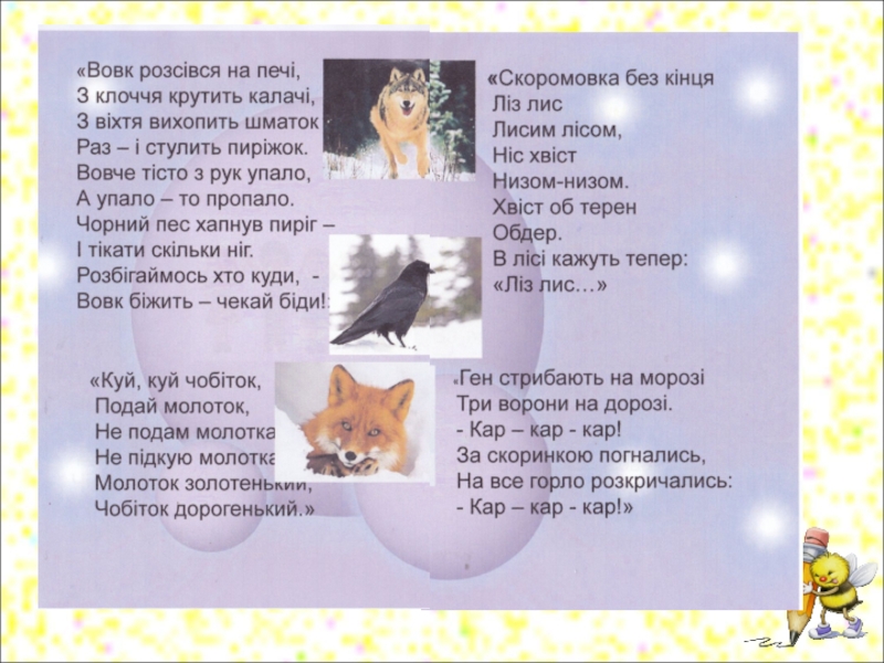 До нори вечерю ніс. Шовком,шерстю шви обшило.