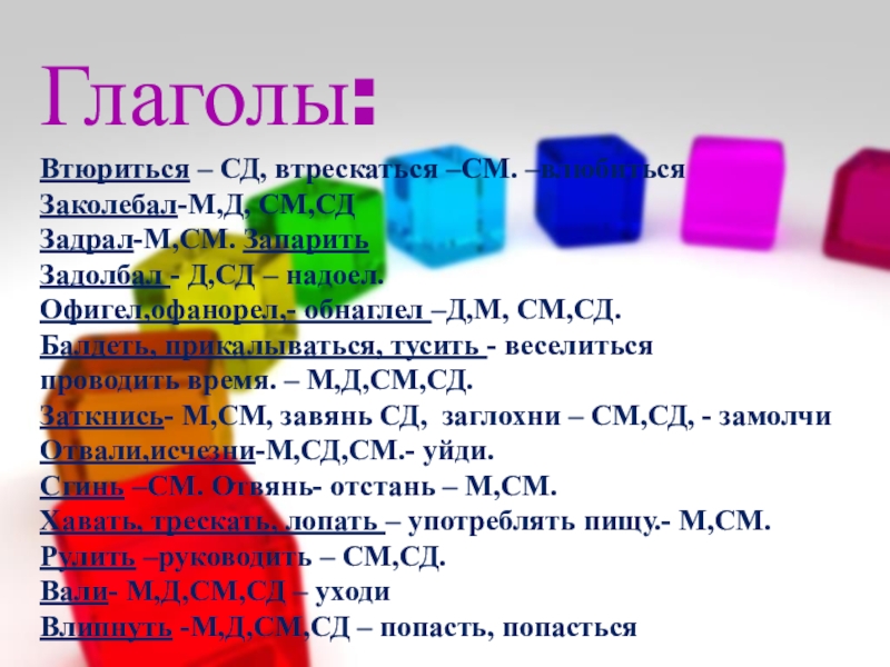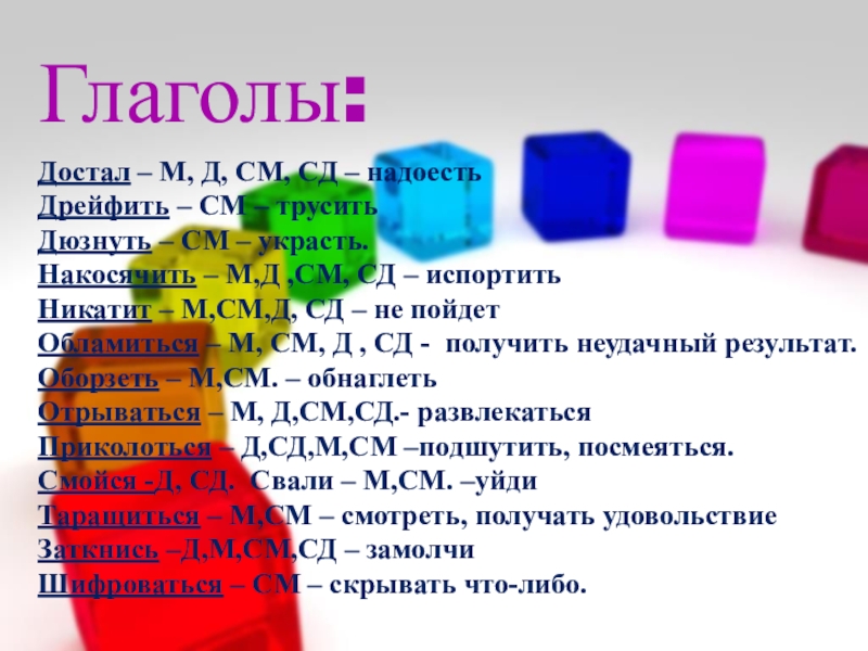 Отрываться – М, Д,СМ,СД.- развлекаться