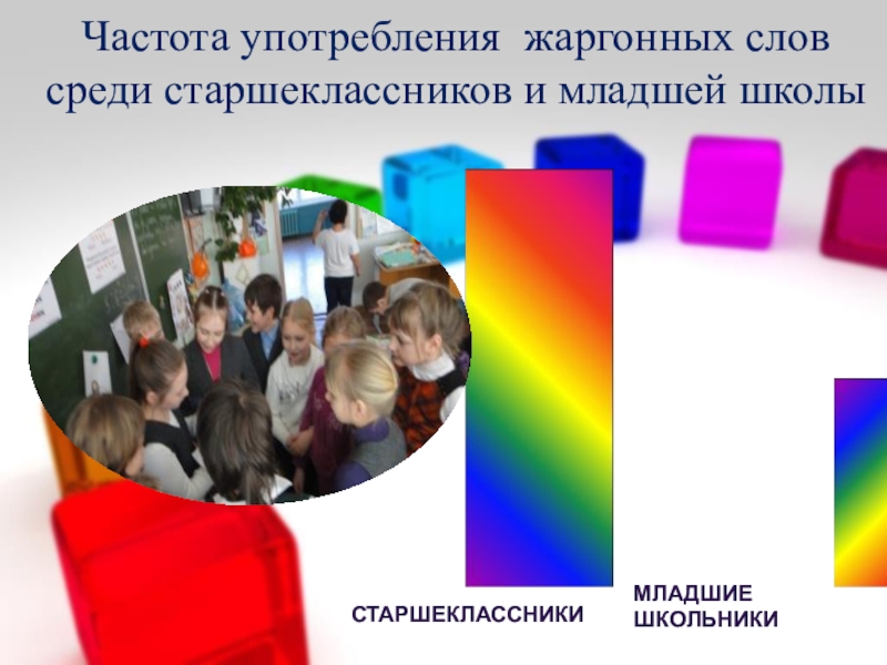 Слайд 27Частота употребления жаргонных слов среди старшеклассников и младшей школы
