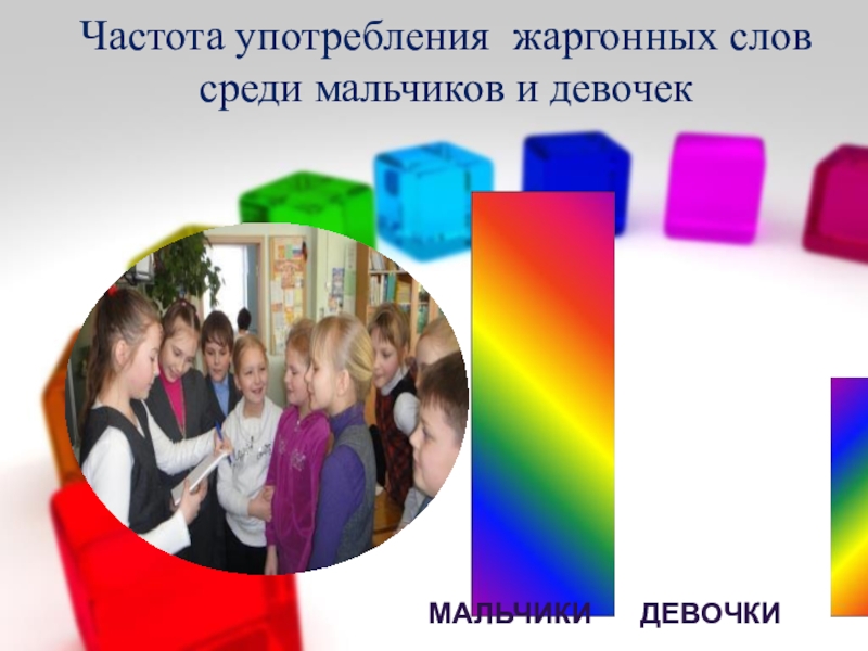 Слайд 26Частота употребления жаргонных слов среди мальчиков и девочек