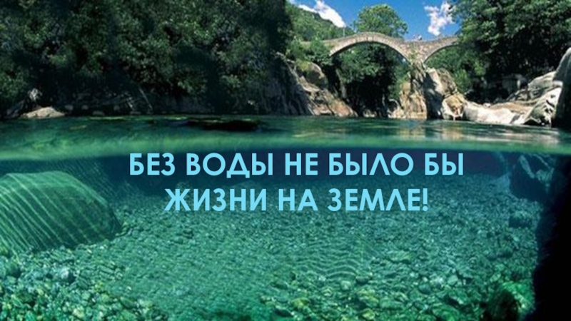 Слайд 6БЕЗ ВОДЫ НЕ БЫЛО БЫ ЖИЗНИ НА ЗЕМЛЕ!