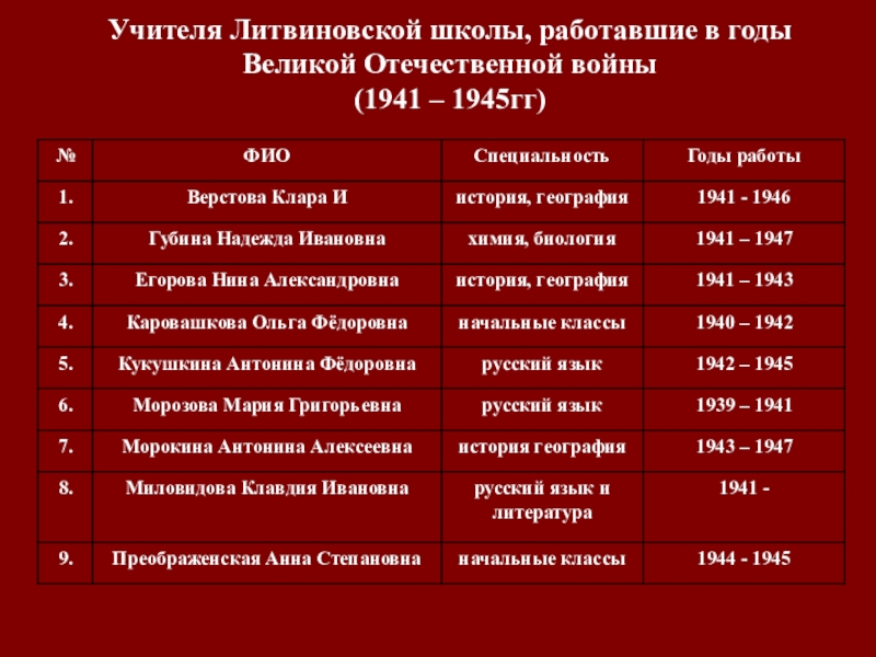 (1941 – 1945гг)»