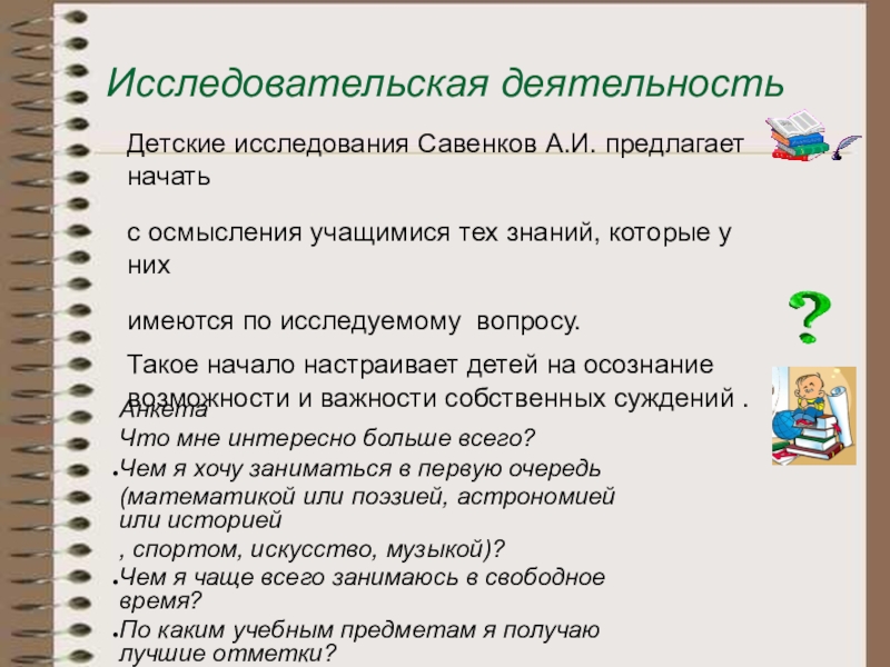 В обобщенном виде он включает следующее (по Савенкову А.И.):