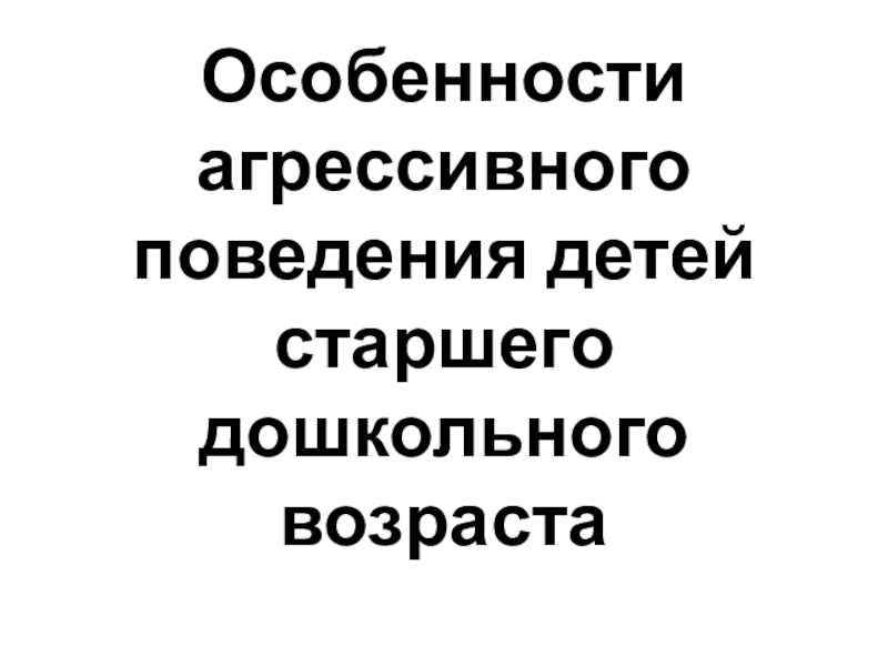Презентация, доклад Особенности агрессивного поведения детей старшего дошкольного возраста