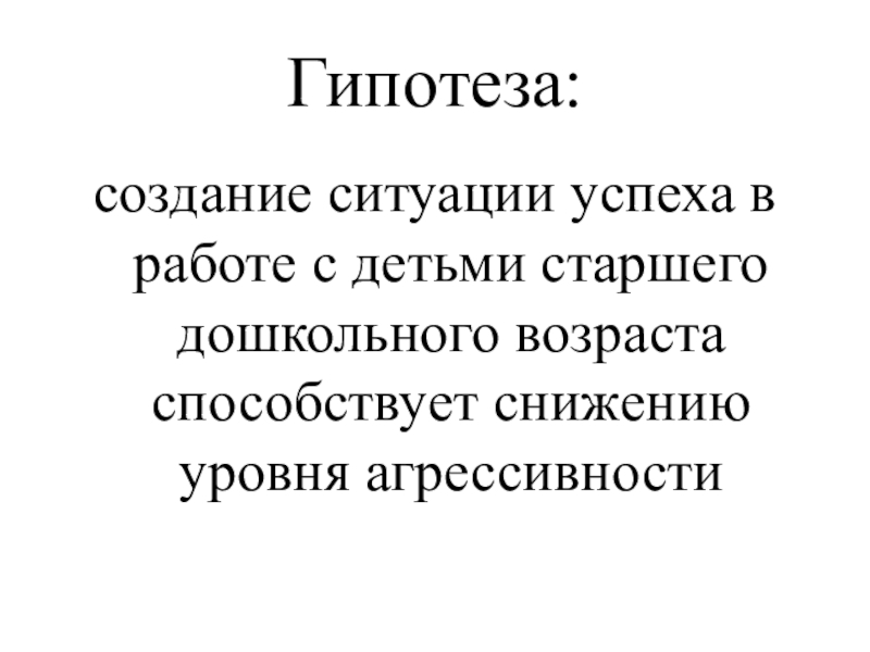 Гипотеза:создание ситуации успеха в работе с детьми старшего дошкольного возраста способствует снижению уровня агрессивности