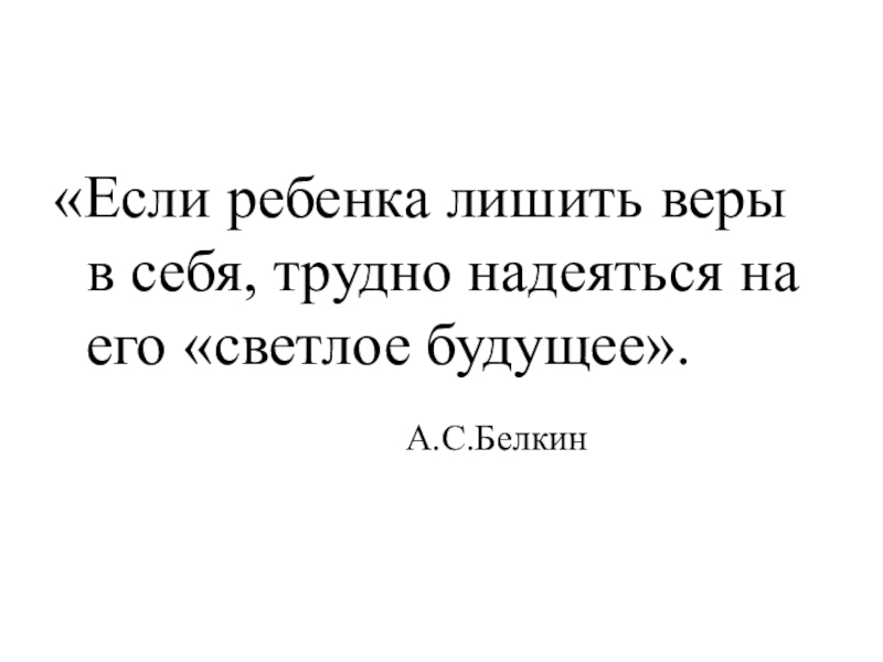 «Если ребенка лишить веры в себя, трудно надеяться на его «светлое будущее». 					    	А.С.Белкин