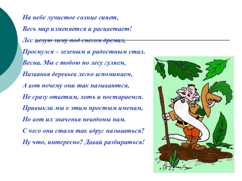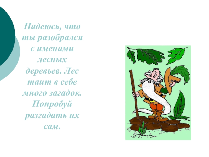 Слайд 25Надеюсь, что ты разобрался с именами лесных деревьев. Лес таит в