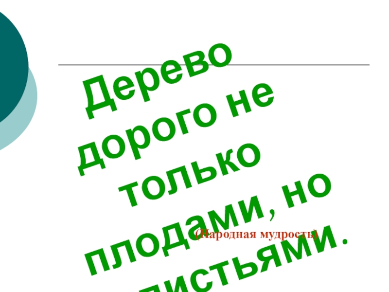 Слайд 22Дерево дорого не только плодами, но и листьями.