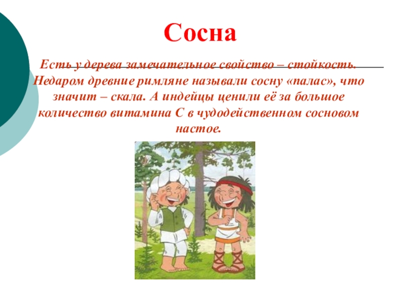 называли сосну «палас», что значит – скала. А индейцы ценили её за большое количество витамина С в чудодейственном сосновом настое.