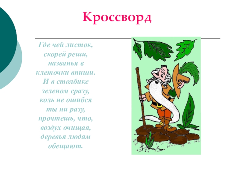 столбике зеленом сразу, коль не ошибся ты ни разу, прочтешь, что, воздух очищая, деревья людям обещают.