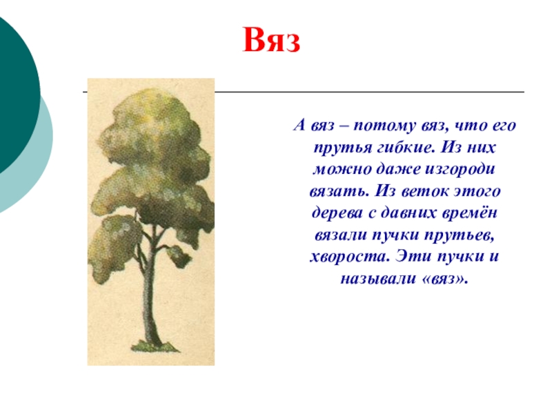 них можно даже изгороди вязать. Из веток этого дерева с давних времён вязали пучки прутьев, хвороста. Эти пучки и называли «вяз».