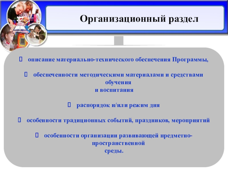 Организация развивающей предметно-пространственной среды