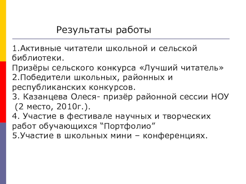 Слайд 441.Активные читатели школьной и сельской библиотеки.
