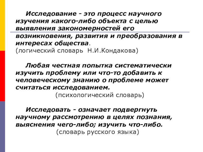 Исследование - это процесс научного изучения какого-либо объекта с целью