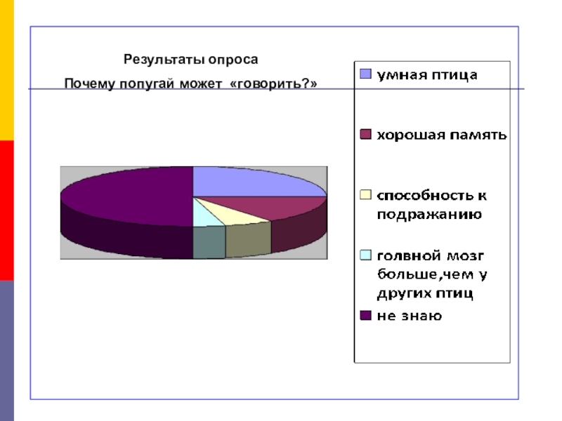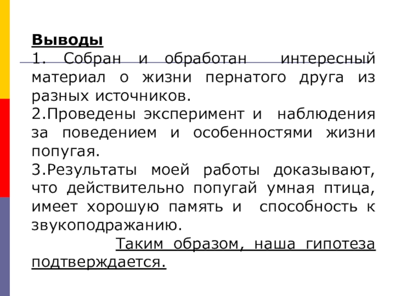 3.Результаты моей работы доказывают, что действительно попугай умная птица, имеет хорошую память и способность к звукоподражанию.
