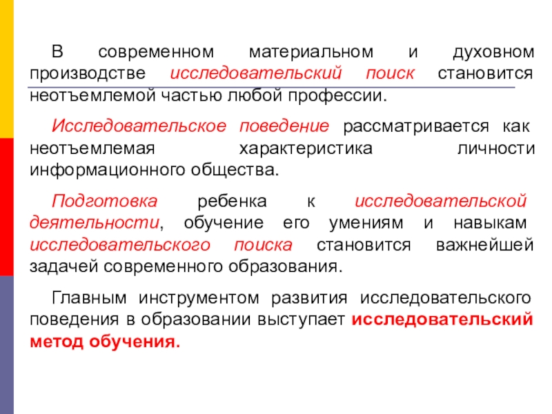 Слайд 4В современном материальном и духовном производстве исследовательский поиск становится неотъемлемой частью