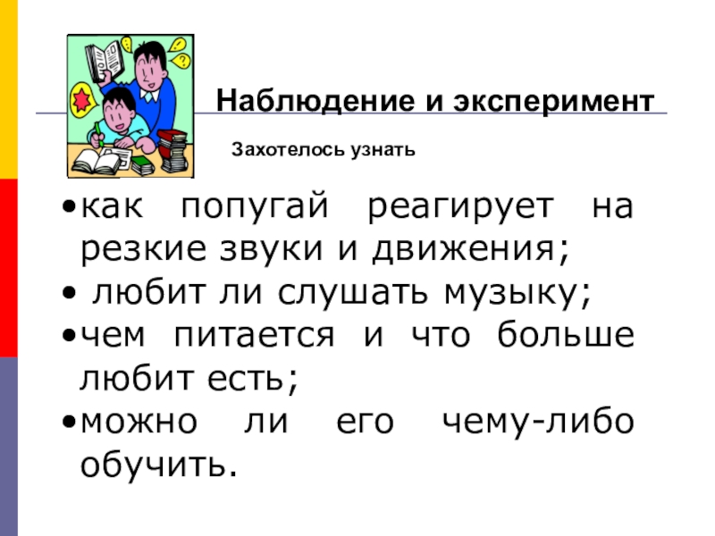 2.Проведены эксперимент и наблюдения за поведением и особенностями жизни попугая.