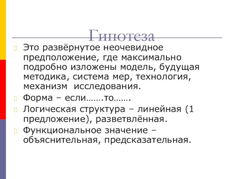 Это развёрнутое неочевидное предположение, где максимально подробно изложены модель, будущая