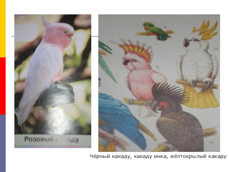 Слайд 36Чёрный какаду, какаду инка, жёлтокрылый какаду