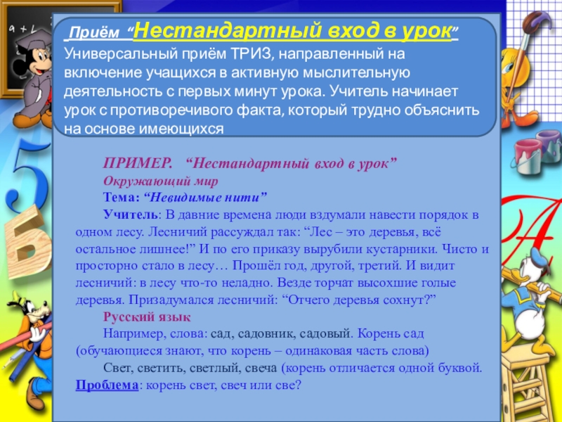 Приём “Нестандартный вход в урок”