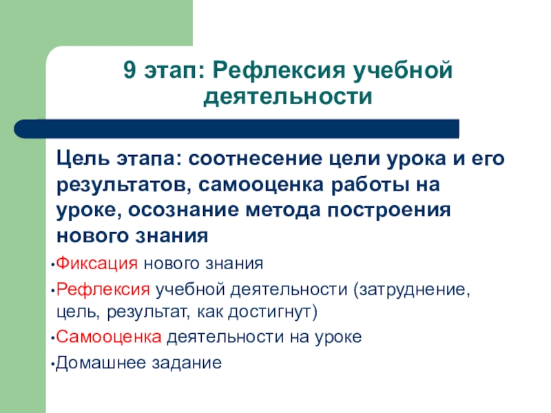 Слайд 179 этап: Рефлексия учебной деятельности